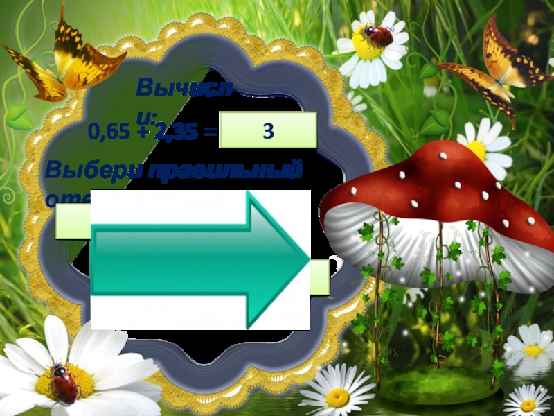 Вычисли:0,65 + 2,35 = ?Выбери правильный ответ:32,0132,12,9