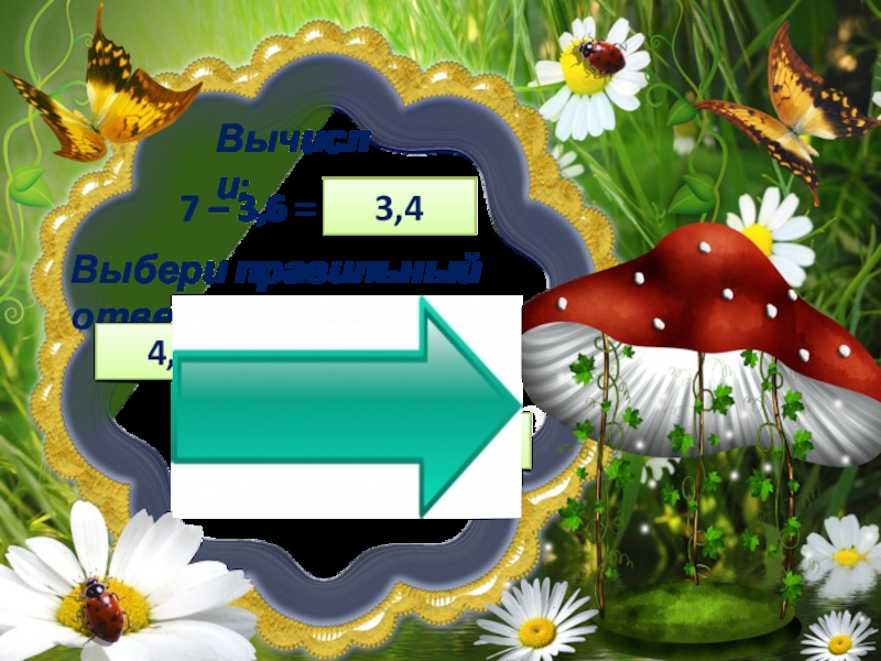 Вычисли:7 – 3,6 = ?Выбери правильный ответ:3,44,43,43,24,2