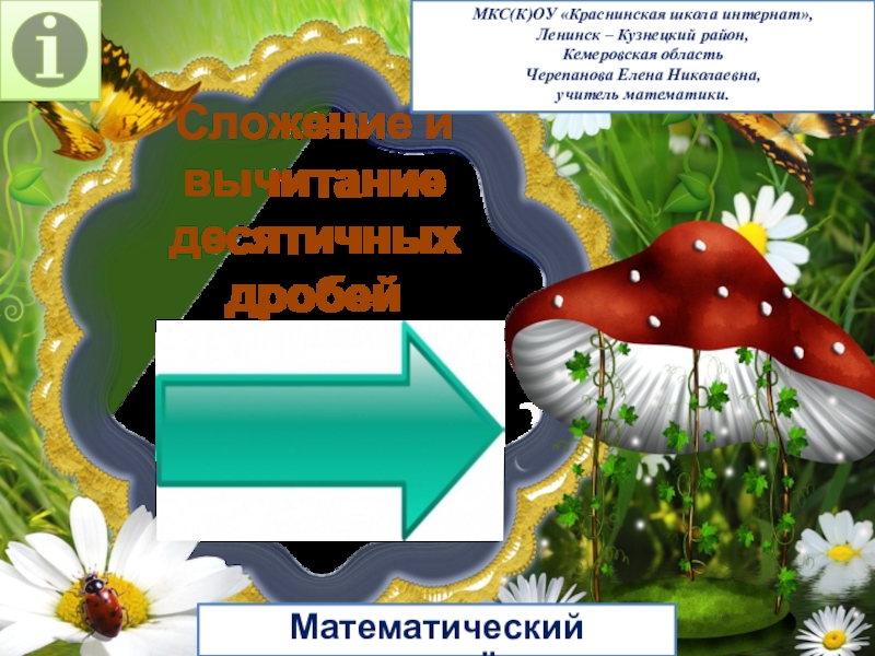 Сложение и вычитание десятичных дробейМатематический тренажёрМКС(К)ОУ «Краснинская школа интернат»,Ленинск – Кузнецкий район,Кемеровская областьЧерепанова Елена Николаевна,учитель математики.