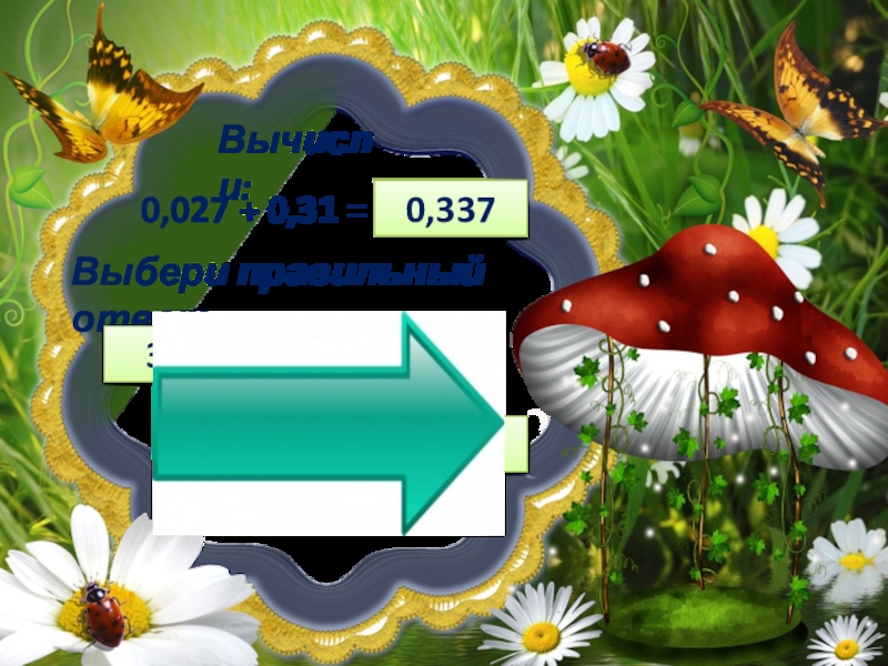 Вычисли:0,027 + 0,31 = ?Выбери правильный ответ:0,3370,0580,3373,370,58