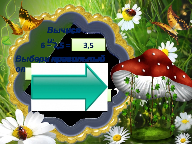 Вычисли:6 – 2,5 = ?Выбери правильный ответ:3,53,0033,53,0535