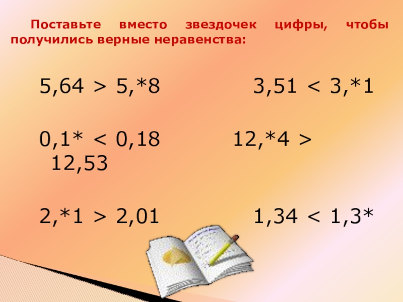 Поставьте вместо звездочек цифры, чтобы получились верные неравенства: