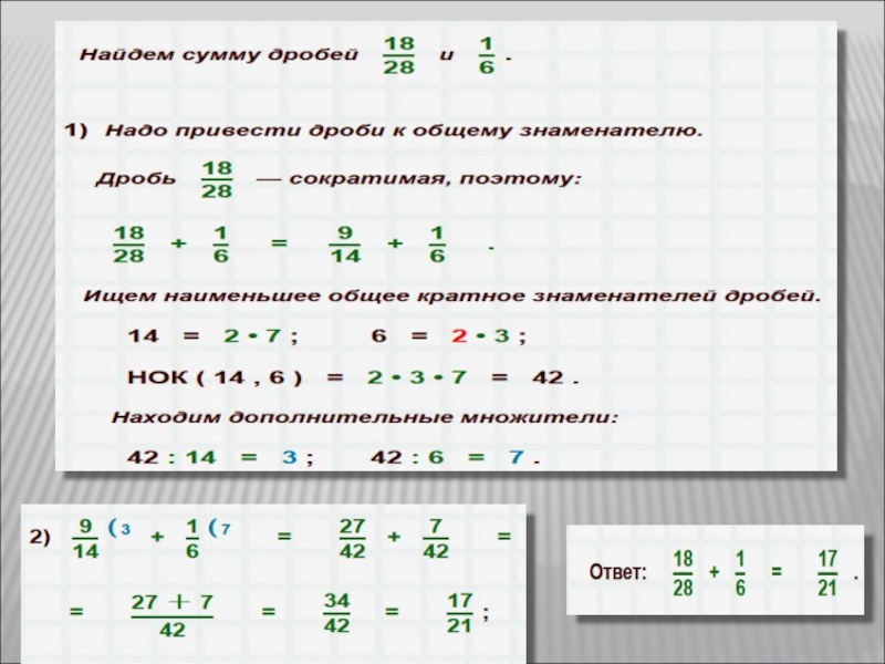 Презентация, доклад Сложение и вычитание дробей с разными знаменателями.