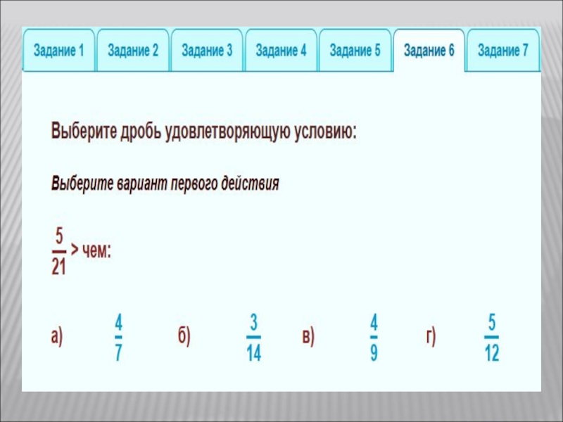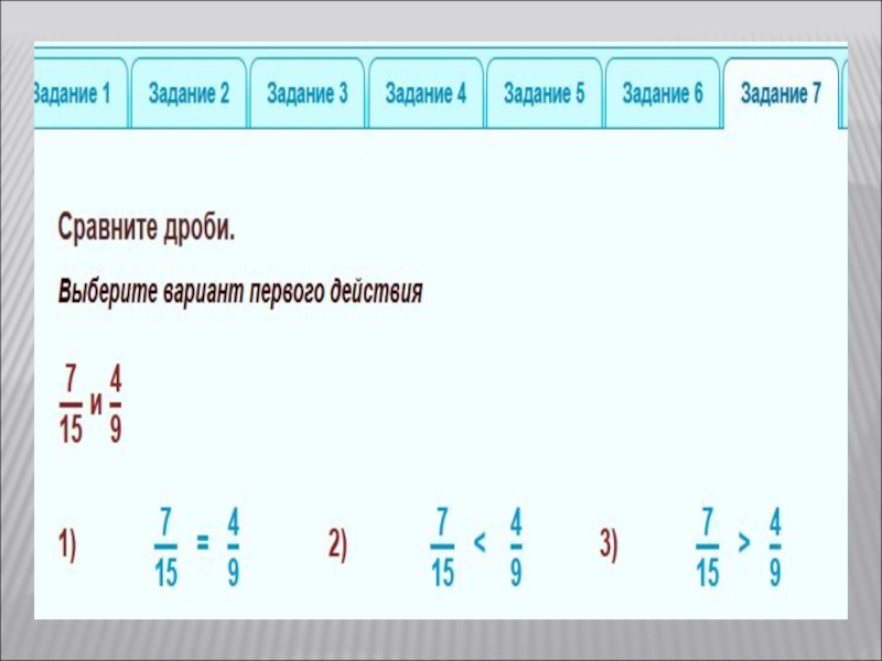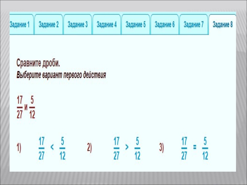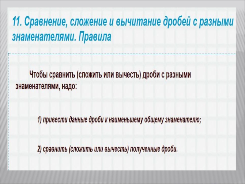 Слайд 1СРАВНЕНИЕ, СЛОЖЕНИЕ И ВЫЧИТАНИЕ ДРОБЕЙ С РАЗНЫМИ ЗНАМЕНАТЕЛЯМИ