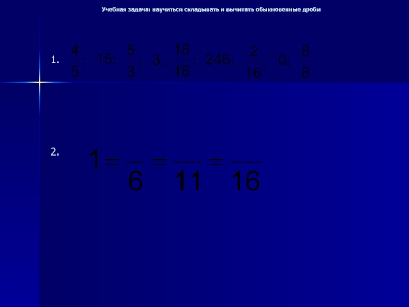 Учебная задача: научиться складывать и вычитать обыкновенные дроби