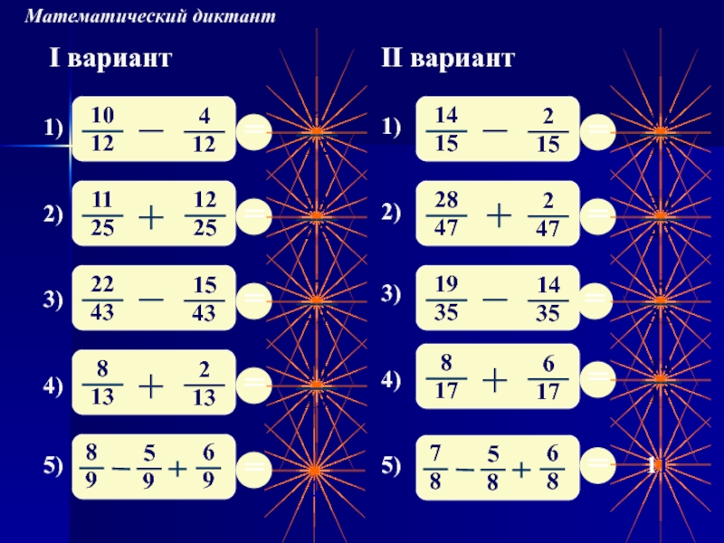 - разность шести шестых и четырех шестых;