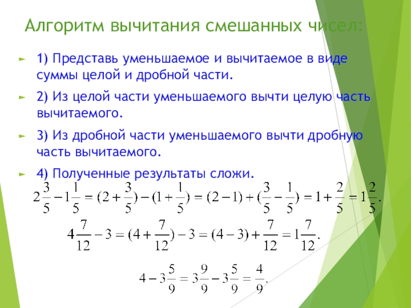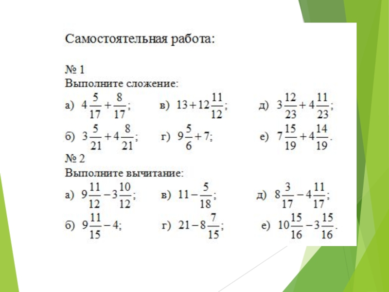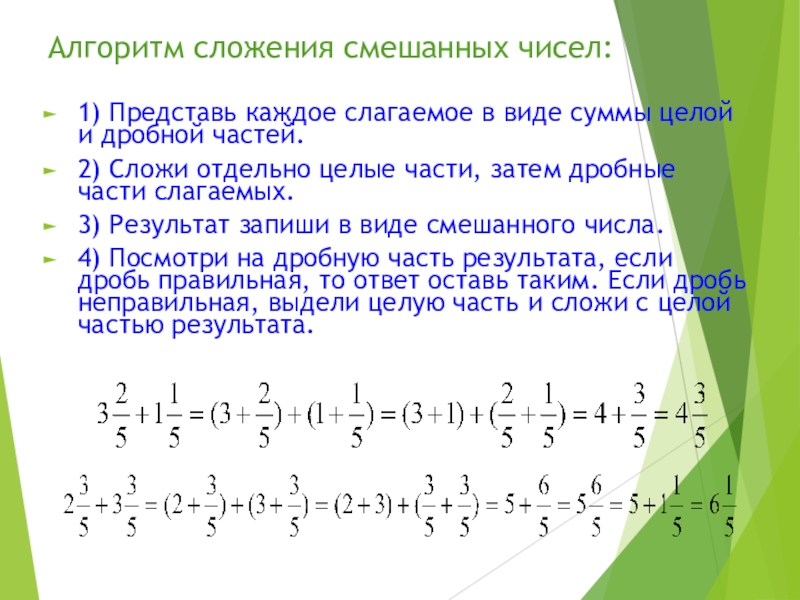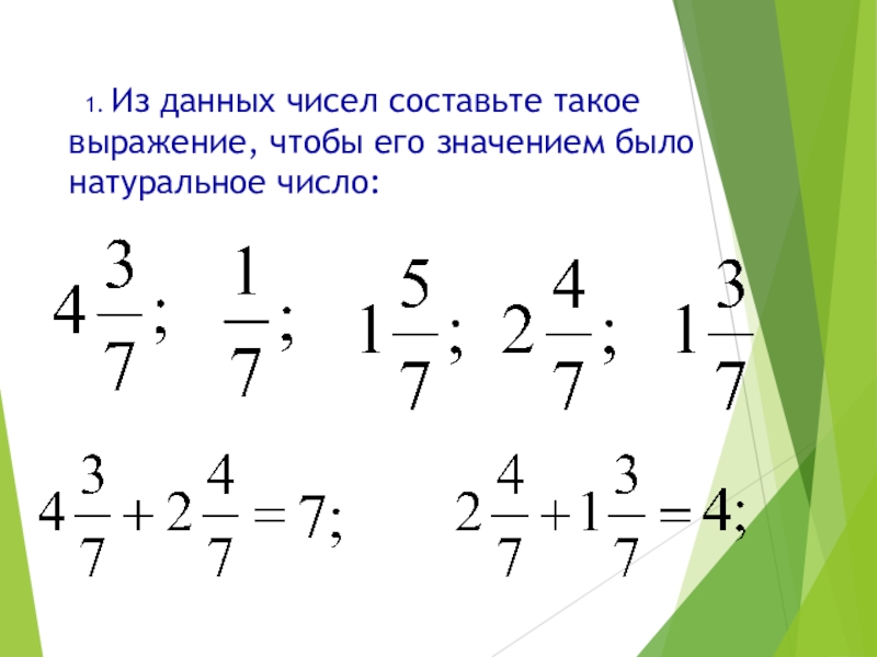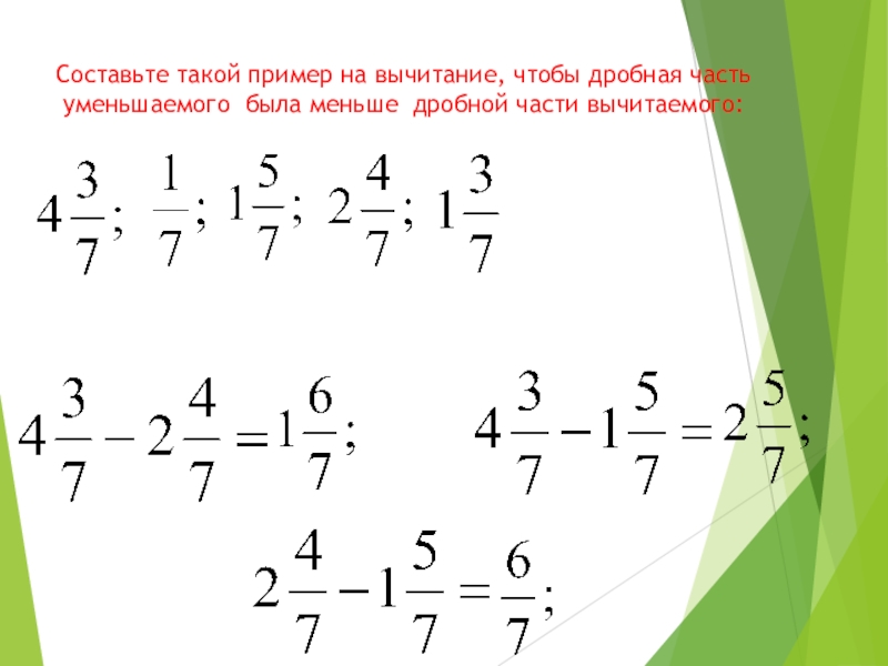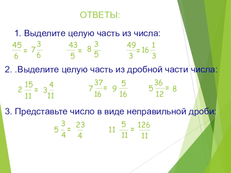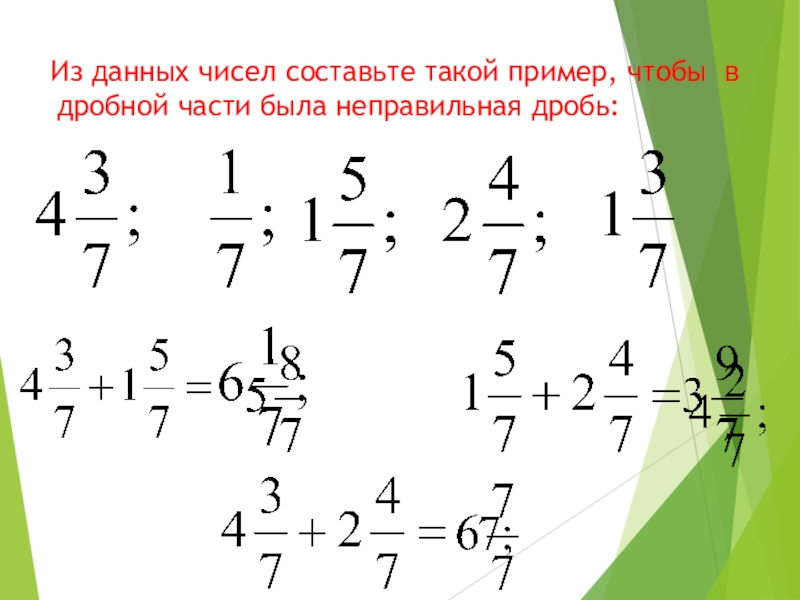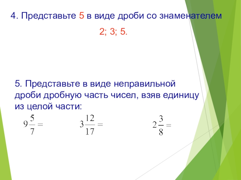 5. Представьте в виде неправильной дроби дробную часть чисел, взяв единицу из целой части:
