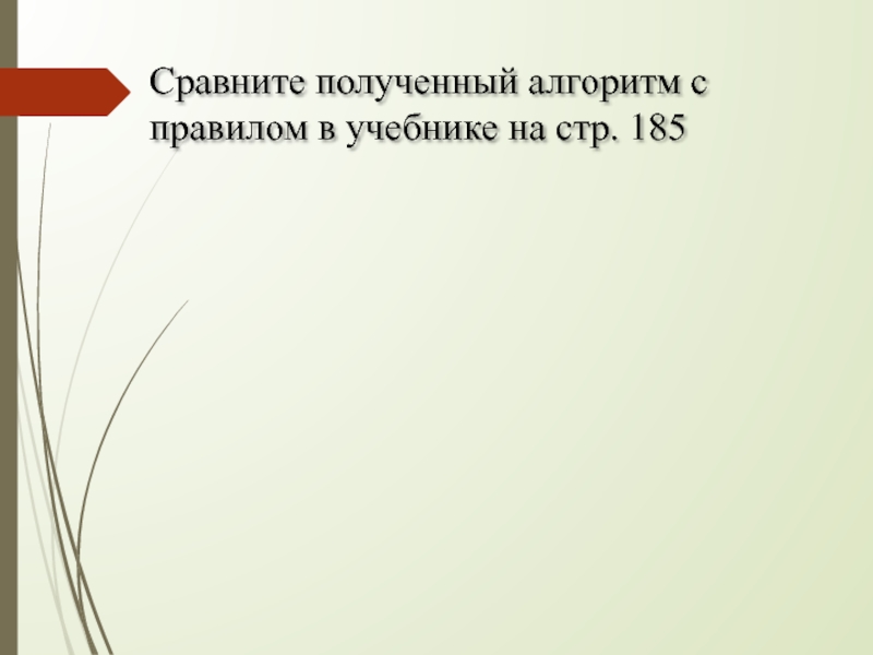 Слайд 18Сравните полученный алгоритм с правилом в учебнике на стр. 185