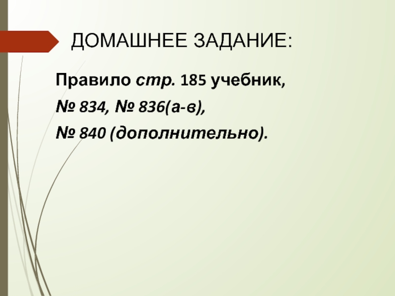 ДОМАШНЕЕ ЗАДАНИЕ:Правило стр. 185 учебник,№ 834, № 836(а-в), № 840 (дополнительно).