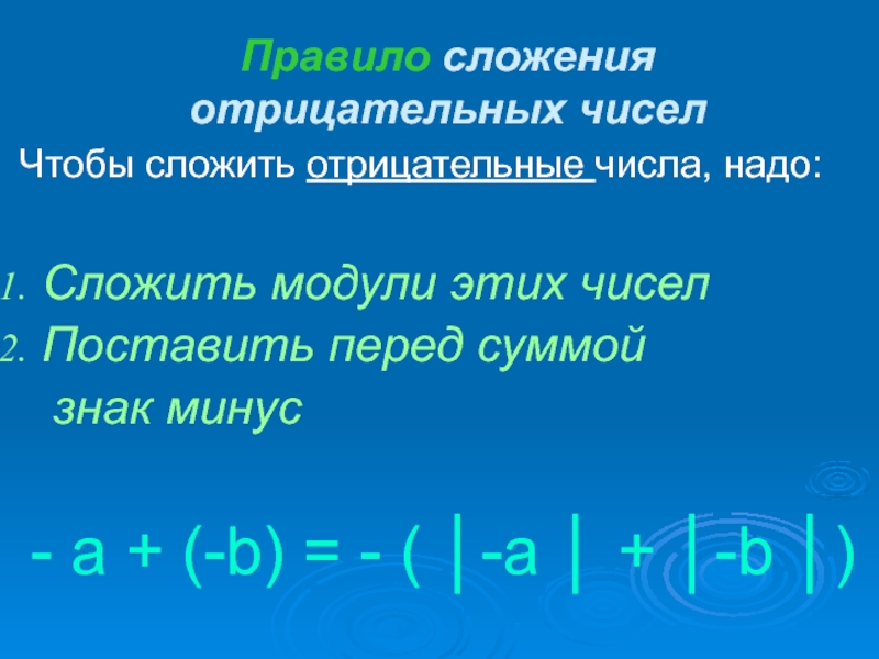- a + (-b) = - ( │-a │ + │-b │)