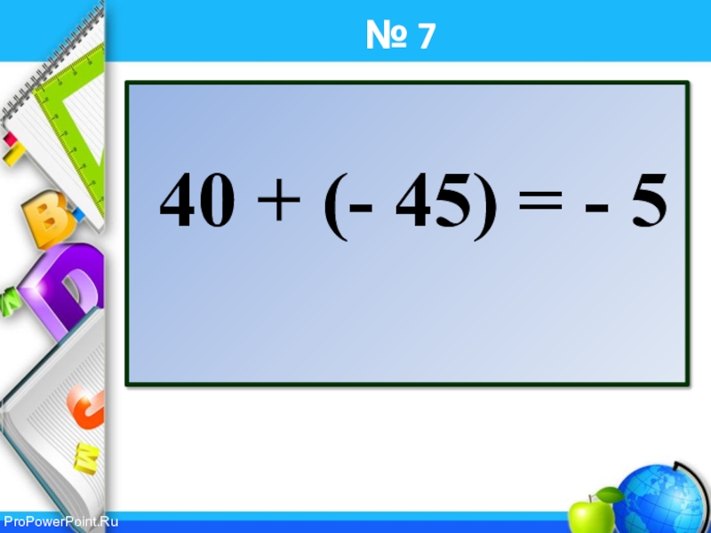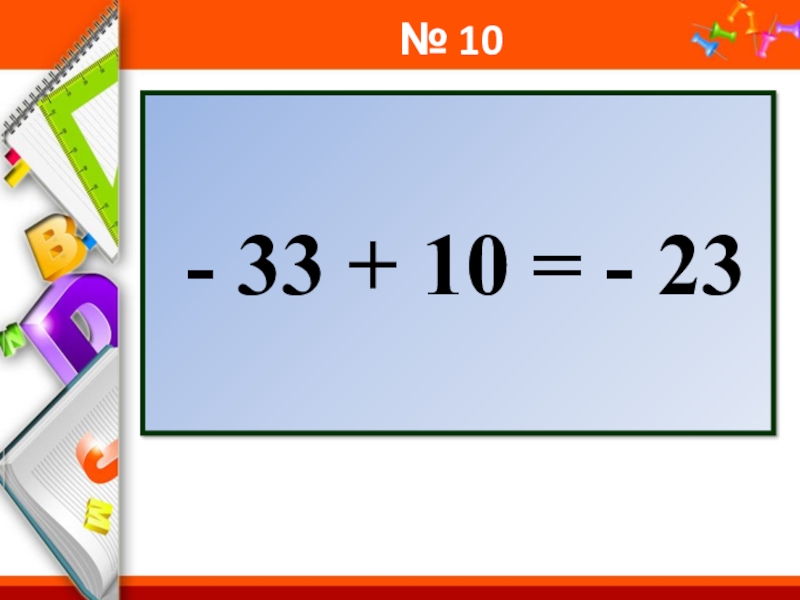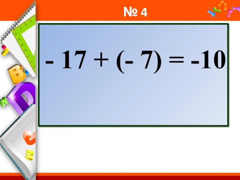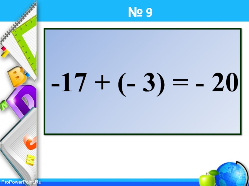 № 49,8 ≈ 9- 17 + (- 7) = -10