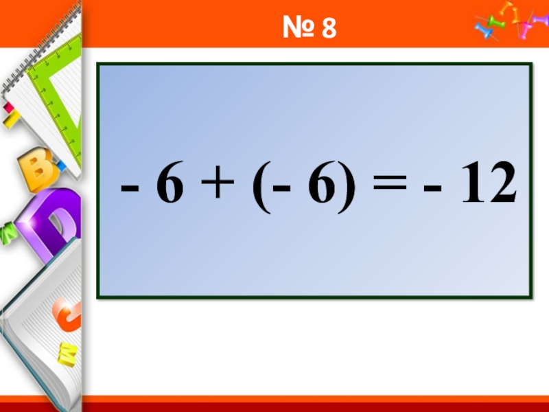 № 85,698 ≈ 0,7- 6 + (- 6) = - 12