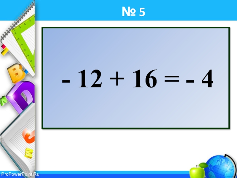 № 50,21 ≈ 1- 12 + 16 = - 4