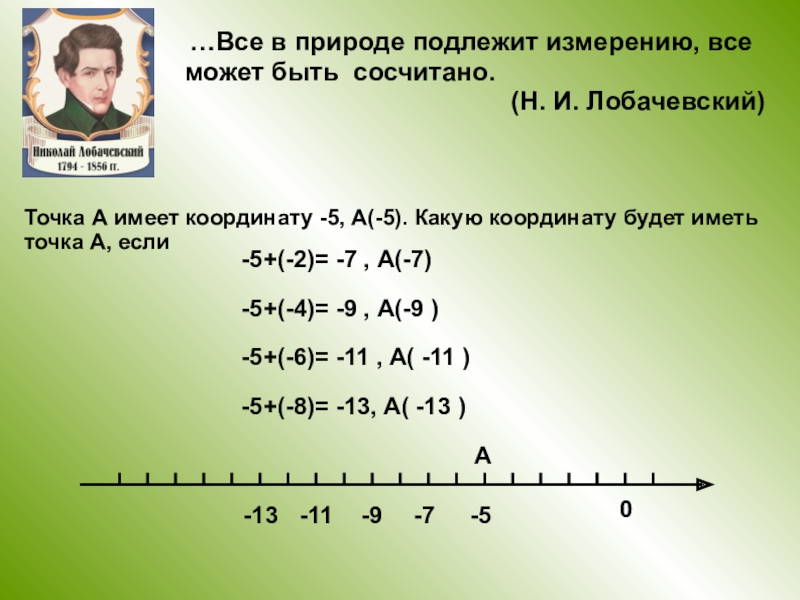 Точка А имеет координату -5, А(-5). Какую координату будет иметь точка А, если