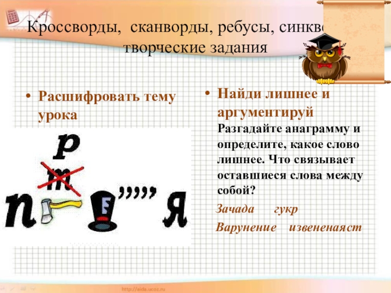 Это сайт презентаций, где можно хранить и обмениваться своими презентациями, докладами, проектами, шаблонами в формате PowerPoint с другими пользователями. Мы помогаем школьникам, студентам, учителям, преподавателям хранить и обмениваться учебными материалами.