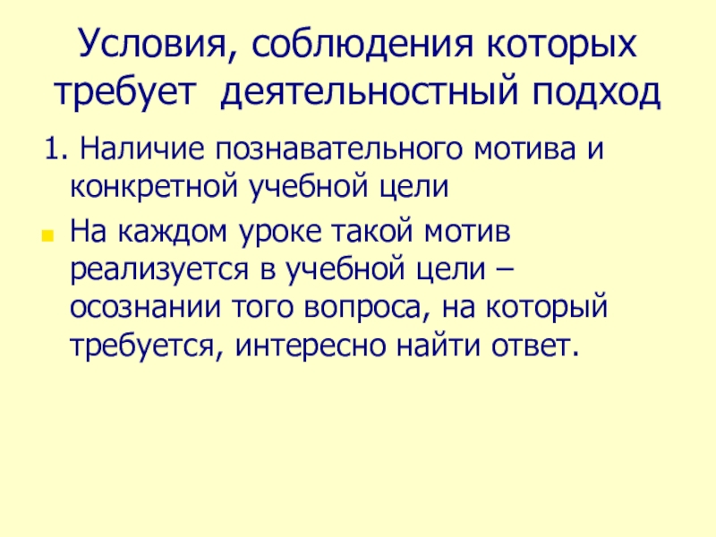 Слайд 4Условия, соблюдения которых требует деятельностный подход