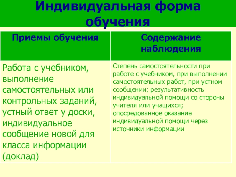 Сочетание общеклассных форм работы с групповыми и индивидуальными.