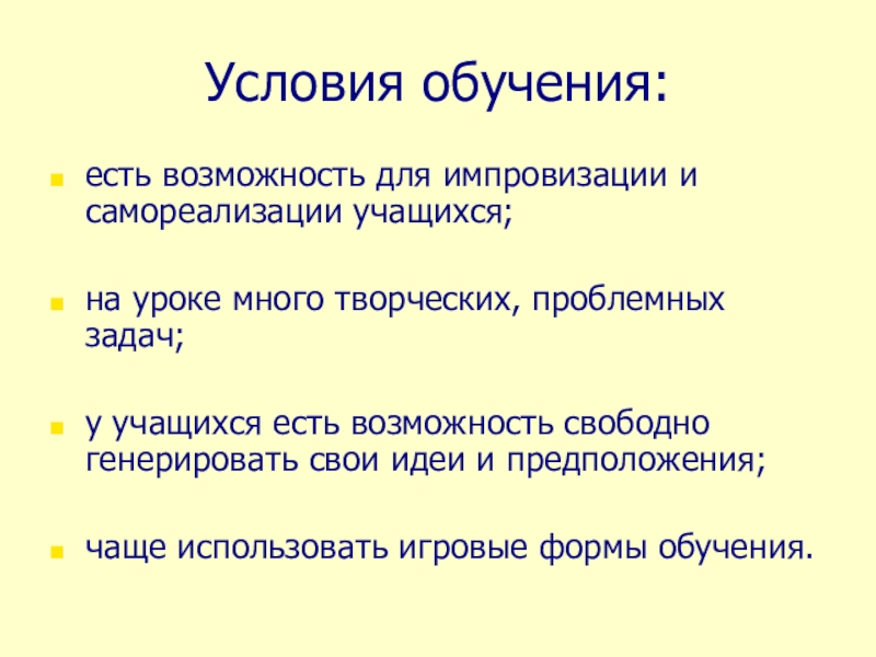 у учащихся есть возможность свободно генерировать свои идеи и предположения;