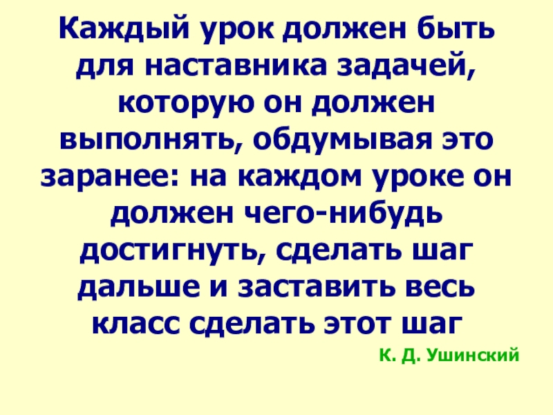 Слайд 2Каждый урок должен быть для наставника задачей, которую он должен выполнять,