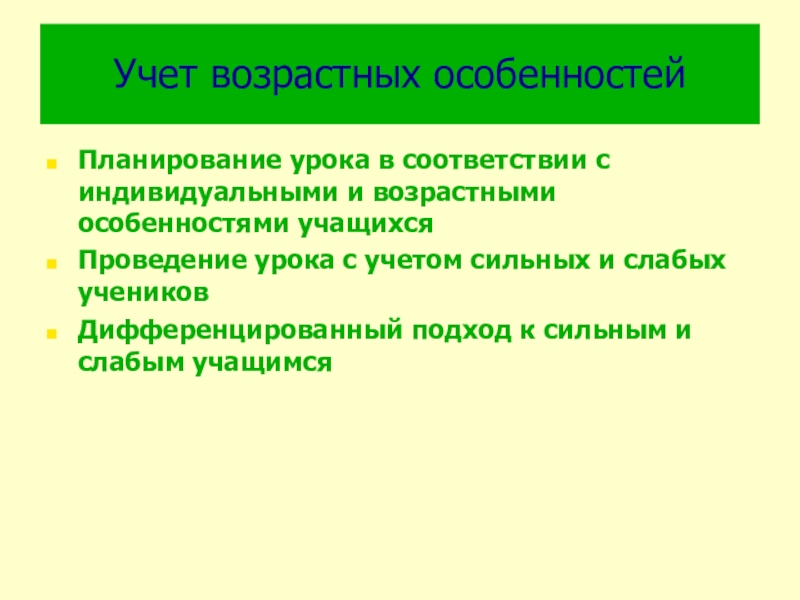 Учет обученности, обучаемости, учебных и воспитательных возможностей учащихся.