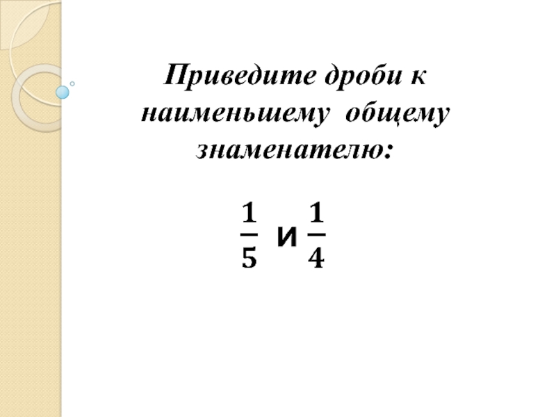 Слайд 4Приведите дроби к наименьшему общему знаменателю: