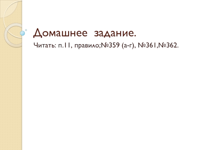 Домашнее задание.Читать: п.11, правило;№359 (а-г), №361,№362.