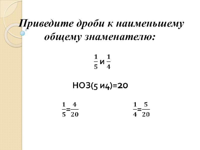 Слайд 5Приведите дроби к наименьшему общему знаменателю: