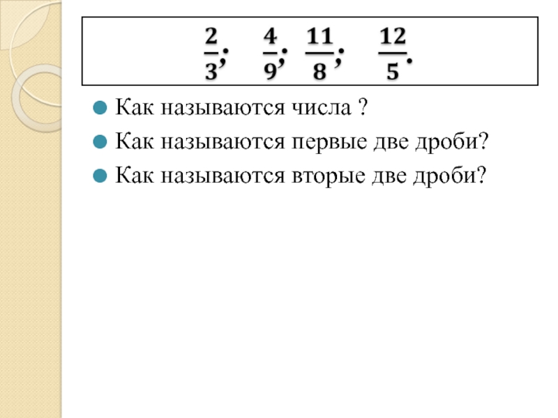 Как называются числа ?Как называются первые две дроби?Как называются вторые две дроби?