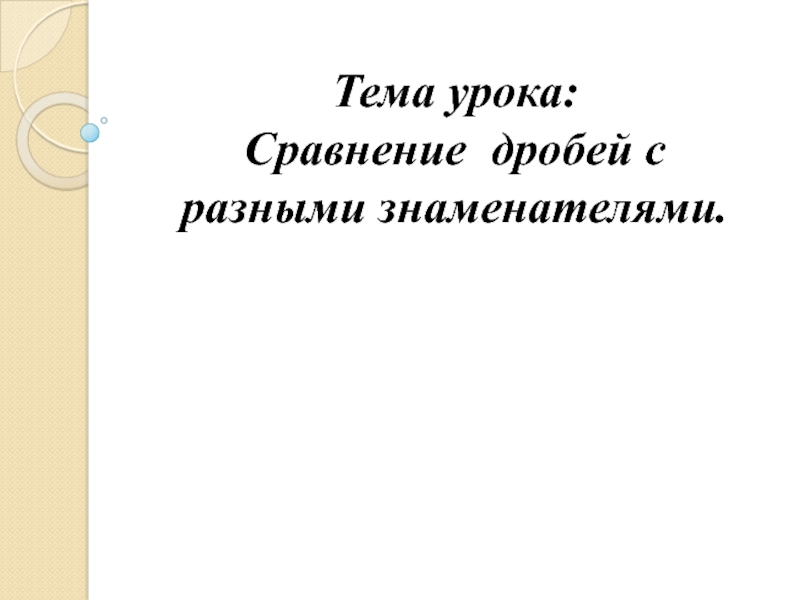 Слайд 9Тема урока: Сравнение дробей с разными знаменателями.