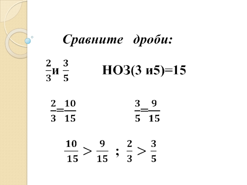 Презентация, доклад Сравнение дробей с разными знаменателями