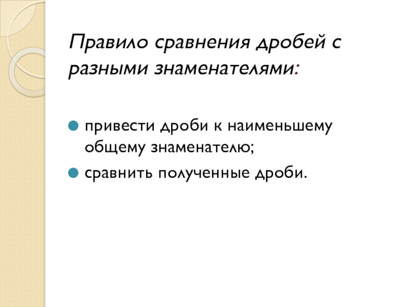 Слайд 12Правило сравнения дробей с разными знаменателями: