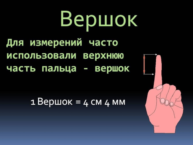 Вершок - старинная русская мера длины , равная  ширине двух пальцев (указательного и среднего).