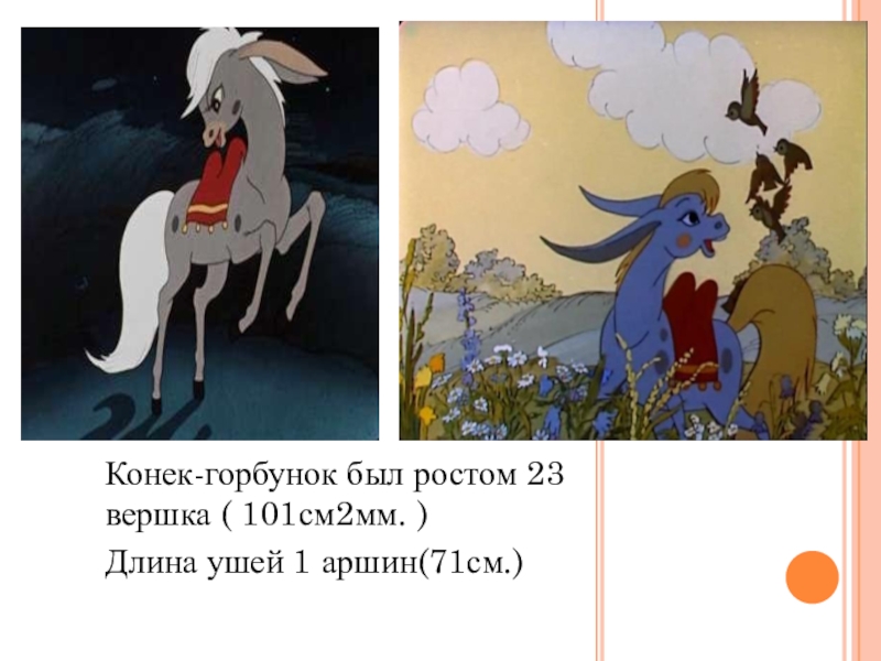 Слайд 6Конек-горбунок был ростом 23 вершка ( 101см2мм. )
