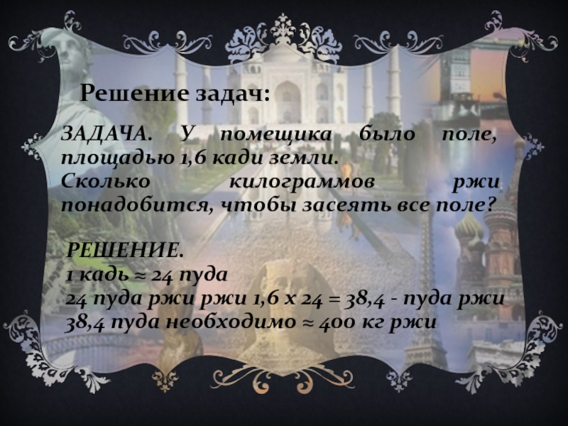 24 пуда ржи ржи 1,6 х 24 = 38,4 - пуда ржи