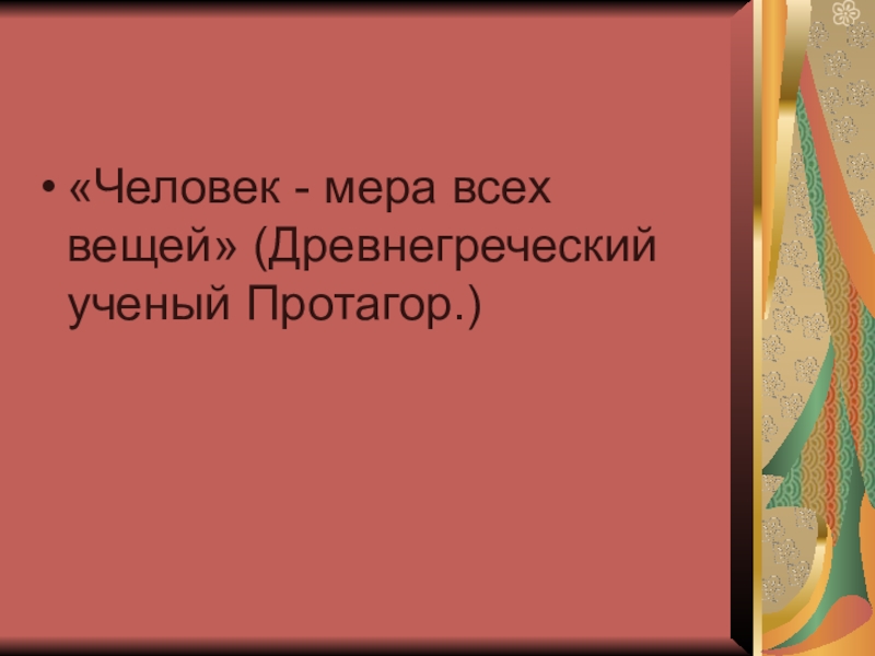 «Человек - мера всех вещей» (Древнегреческий ученый Протагор.)