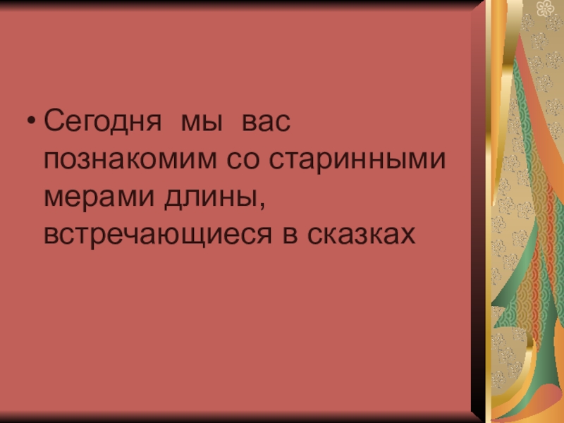 Сегодня мы вас познакомим со старинными мерами длины, встречающиеся в сказках