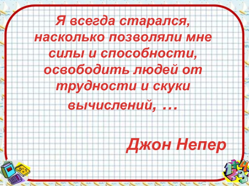 Слайд 15На приеме умножения способом «решетки» основан прибор, называемый палочками Непера.