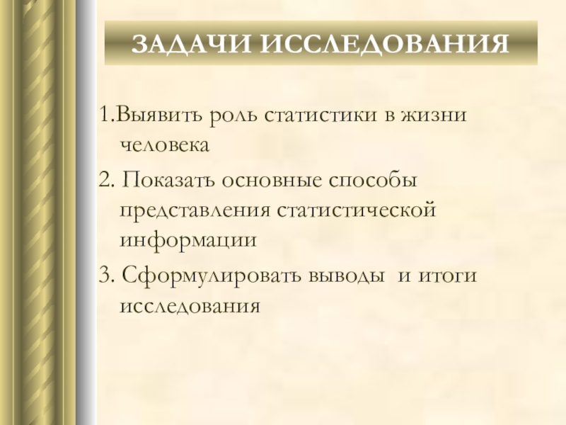 ЗАДАЧИ ИССЛЕДОВАНИЯ