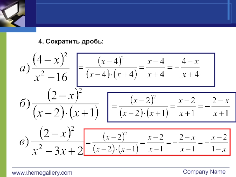 www.themegallery.comCompany Name4. Сократить дробь: