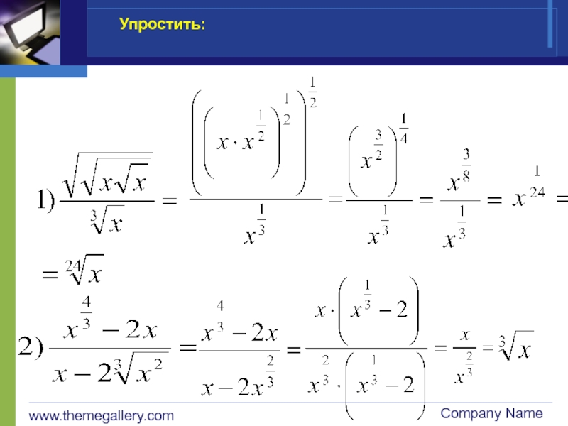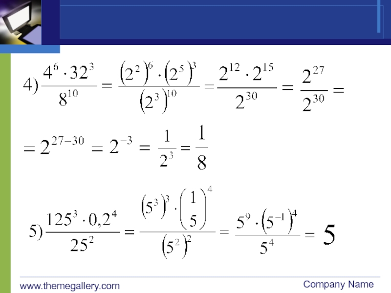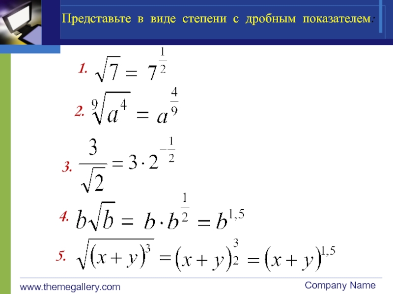 www.themegallery.comCompany Name Представьте в виде степени с дробным показателем:1.2.3.4.5.