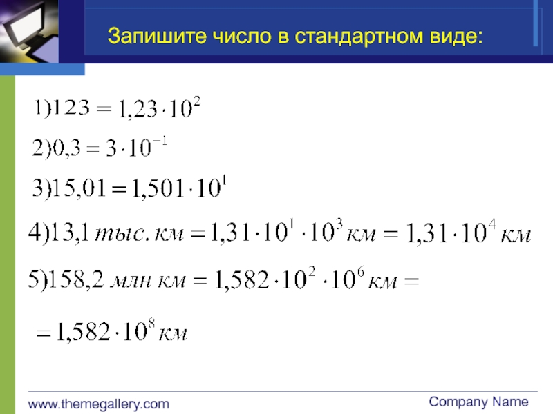 www.themegallery.comCompany NameЗапишите число в стандартном виде:
