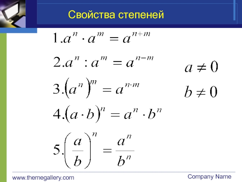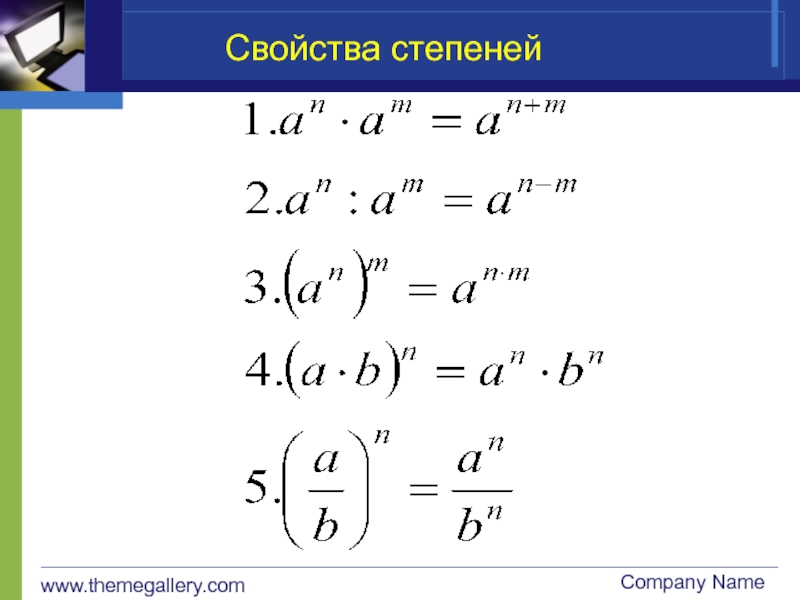 www.themegallery.comCompany NameСвойства степеней