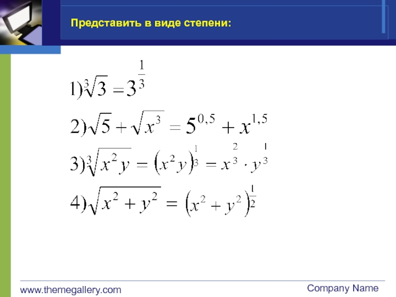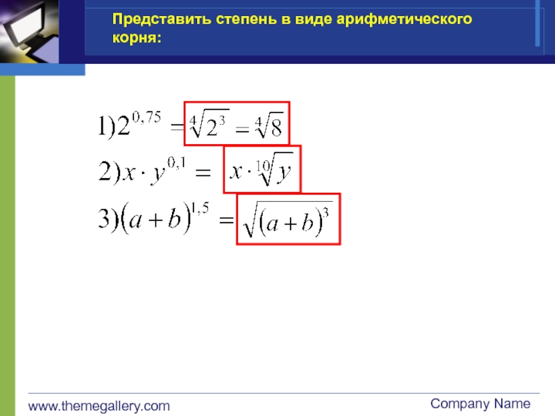 www.themegallery.comCompany NameПредставить степень в виде арифметического корня: