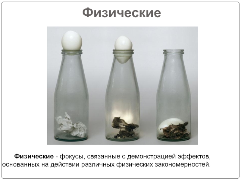Физические - фокусы, связанные с демонстрацией эффектов, основанных на действии различных