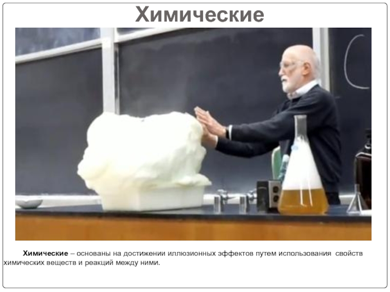 ХимическиеХимические – основаны на достижении иллюзионных эффектов путем использования  свойств химических веществ и реакций между ними.