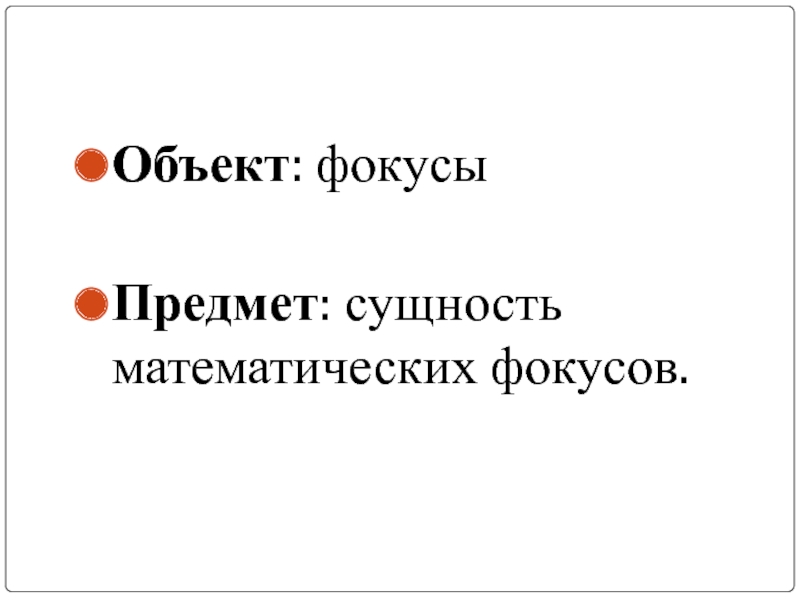Цель: изучить сущность математических фокусов и апробировать их на учащихся Краевой Кадетской школы-интернат.Задачи:1. Дать определение понятию фокус;2.