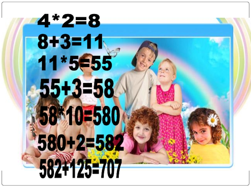 4*2=8 8+3=11 11*5=55 55+3=58 58*10=580 580+2=582 582+125=707