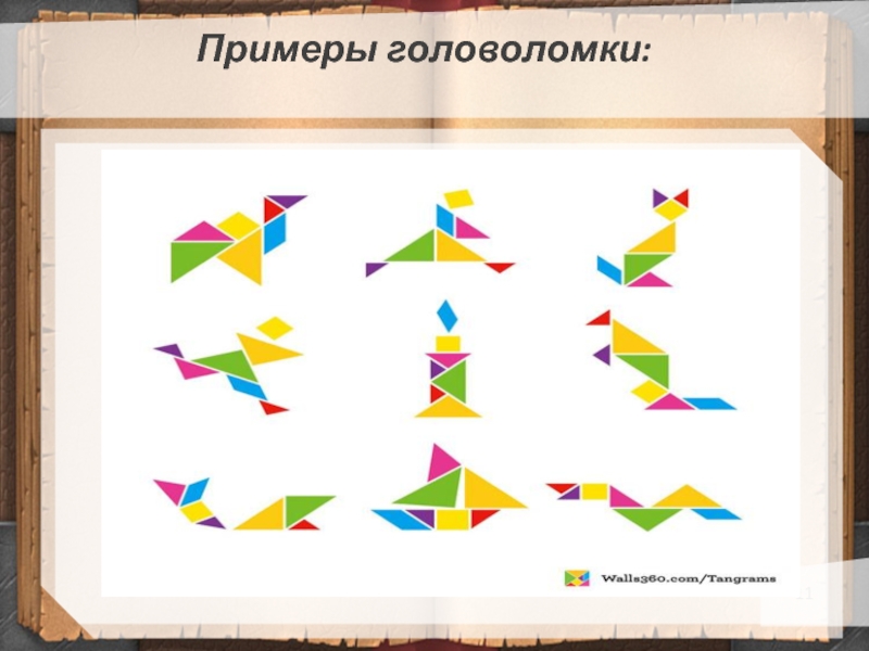 Слайд 11Примеры головоломки: