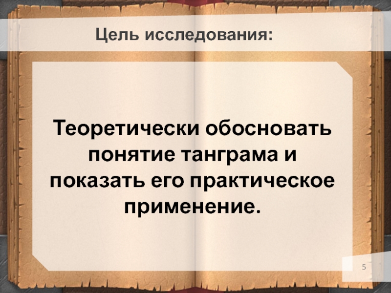 Цель исследования:Теоретически обосновать понятие танграма и показать его практическое применение.