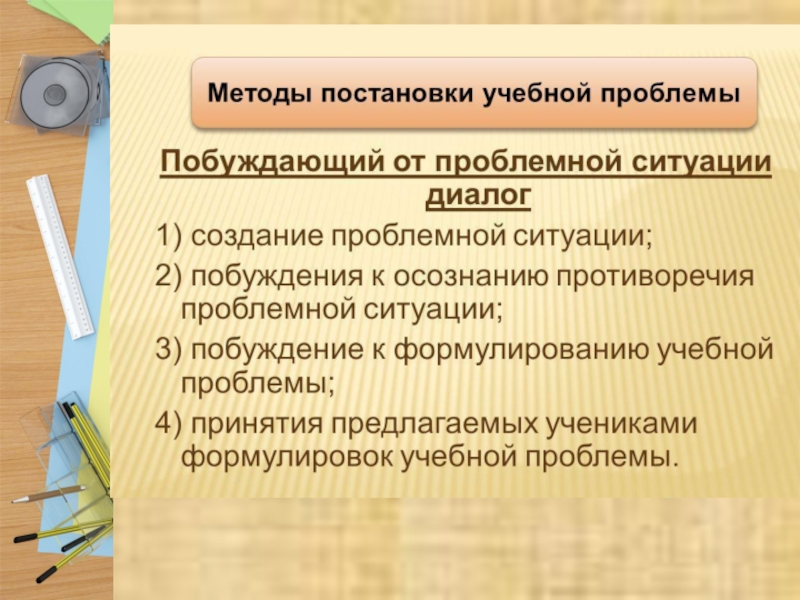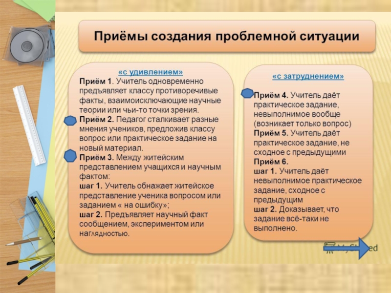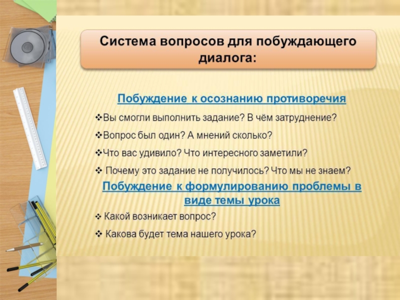 1.Создание и формулирование проблемы:-«С одной стороны… , но с другой стороны …»; -«Что вас удивляет? …» -«Какой возникает вопрос? (проблема)»